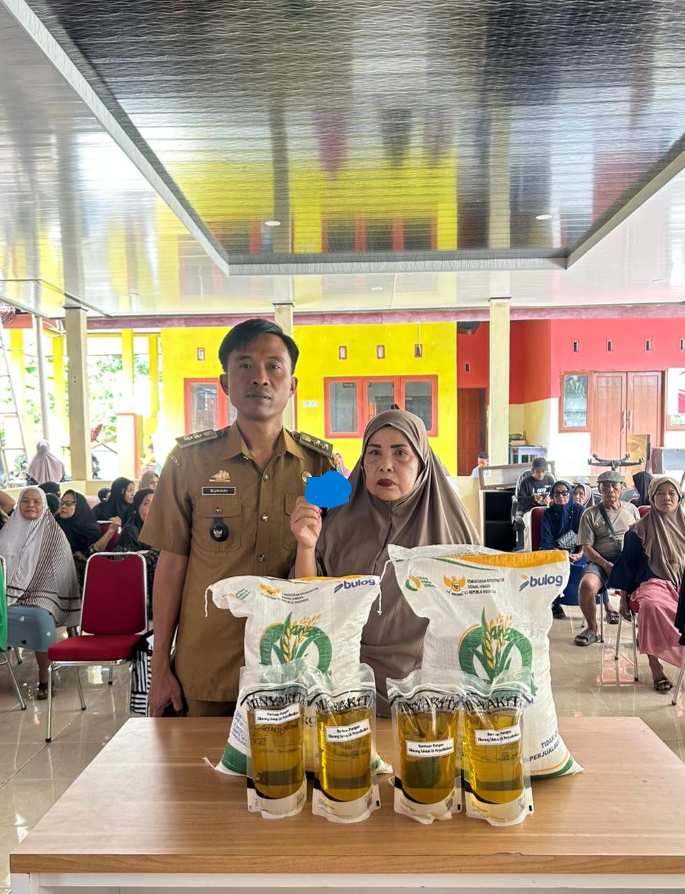 Dalam sambutannya, Kepala Desa menegaskan bahwa bantuan sembako ini merupakan upaya pemerintah desa untuk meringankan beban masyarakat, khususnya bagi keluarga kurang mampu dan terdampak kondisi ekonomi. Paket sembako yang dibagikan berupa beras dan minyak goreng.